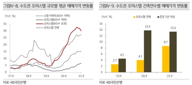 주택가격 상승으로 아파트 실거주 또는 투자가 어려워지자 대체재 성격이 강한 60㎡ 초과 중대형 오피스텔이나 준공 3년 이내 신축 오피스텔에 수요가 유입돼 가격 상승을 견인했다는 것이다.