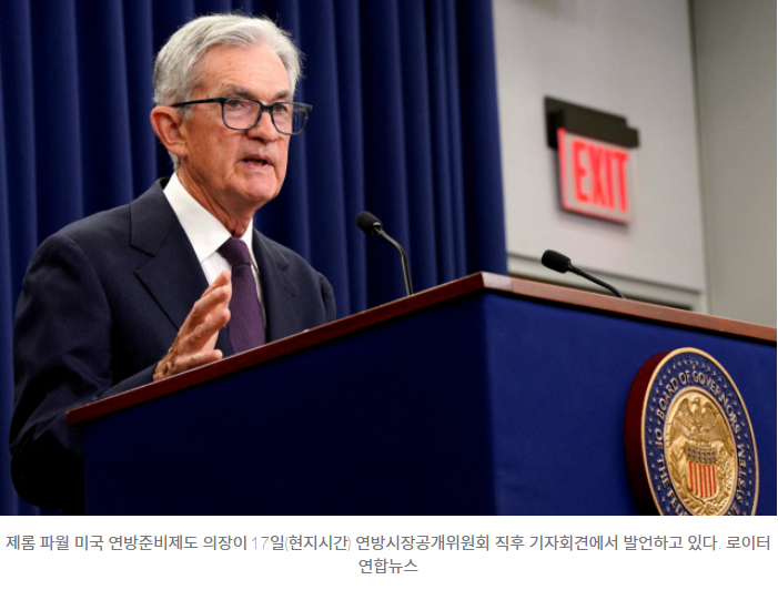 미 연준은 16~17일(현지시간) 열린 연방시장공개위원회(FOMC) 정례회의에서 정책금리(기준금리)를 4.00∼4.25%로 0.25%포인트 내렸다. 지난해 9월, 11월, 12월 3차례 연속으로 내린 뒤 올 들어서는 동결 기조를 유지하다가 9개월 만에 다시 인하를 재개했다. 제롬 파월 연준 의장은 이날 기자회견에서 고용 둔화를 금리 인하의 배경으로 꼽았다.